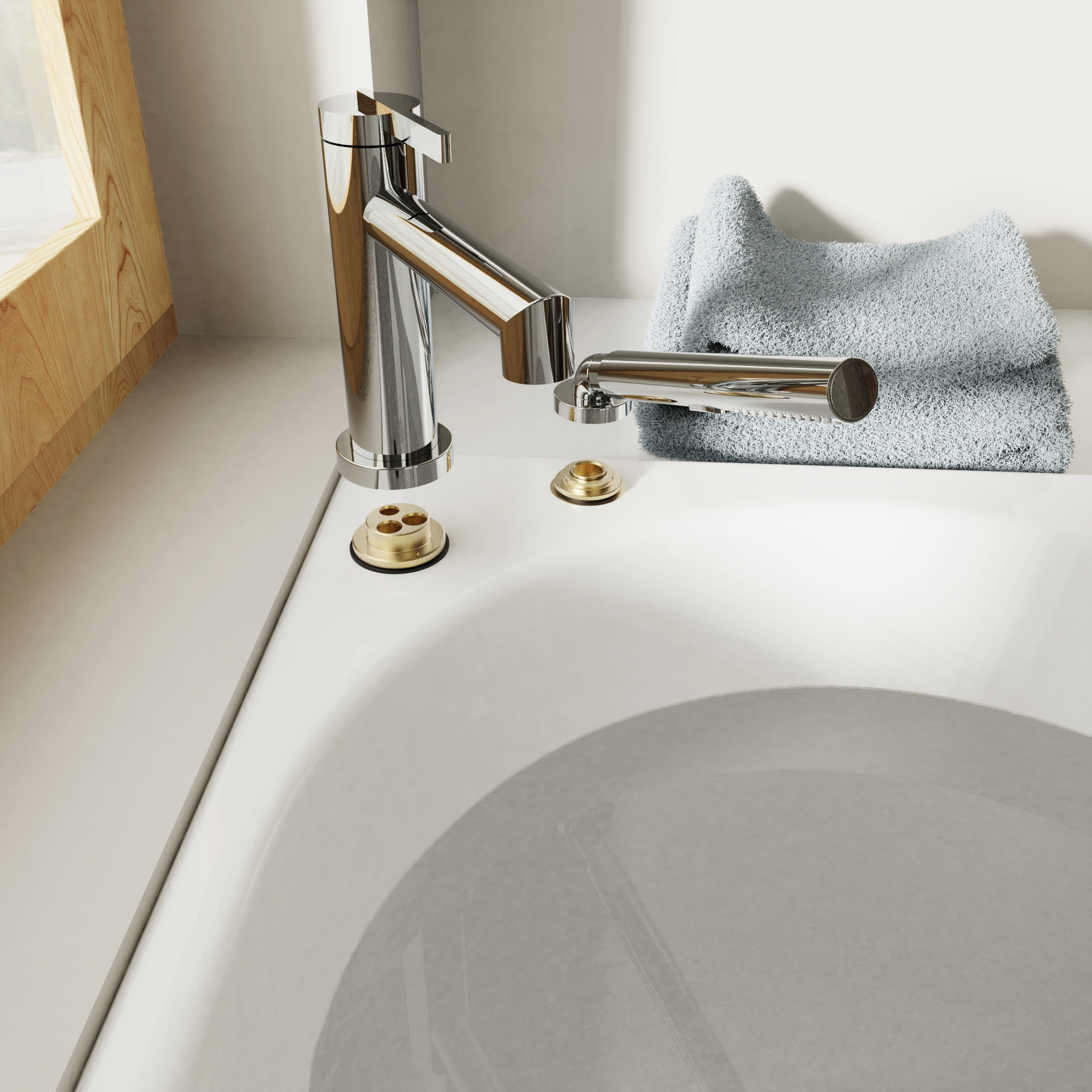 This is the first rough & trim 2 piece roman tub filler on the market & also using the integrated diverter in the cartridge for better serviceability.