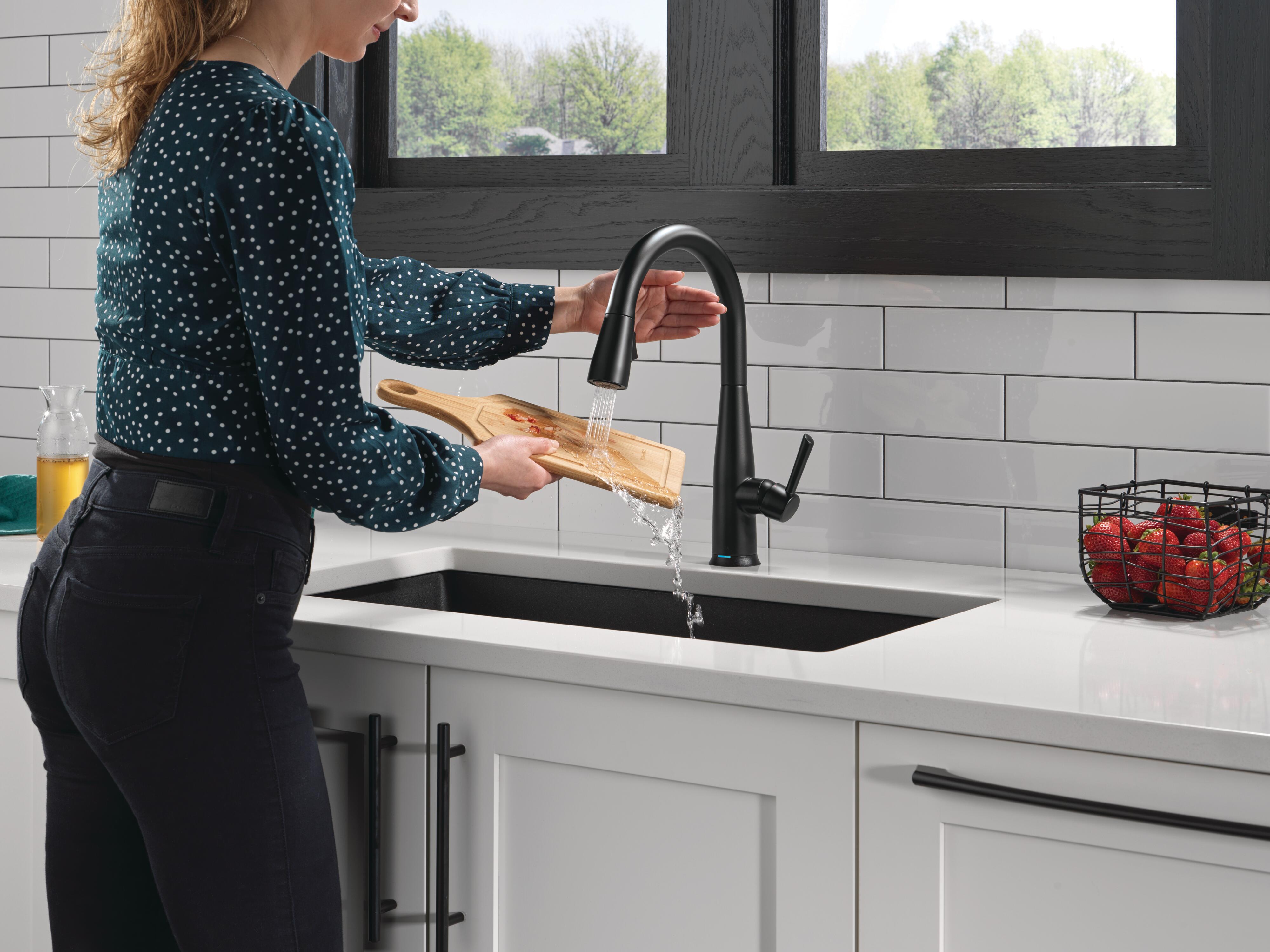 DESCRIPTION: Delta® Touch2O® with Touchless™ faucets help keep germs and mess off the kitchen faucet and provides easy water control 3 ways: simply place the hand near the faucet, tap the faucet surface, or use standard handle activation.